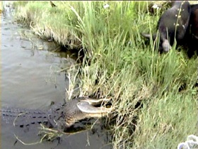 Als uns eine Rangerin vom Park diese Tradition beschrieb, stockte ihre Stimme plötzlich und sie sagte, hier würde etwas Unmögliches geschehen. Gleich zwei ausgewachsene Krokodilmännchen schwammen dicht beieinander. So was gäbe es nicht, sagte sie noch, und dann war es geschehen. Mit einem mächtigen Schlag verjagte das eine Tier das andere. War dies nicht schrecklich genug, wären wir am liebsten weggelaufen, als sich der Kerl umdrehte und unser Schiff angriff. Das Ding war immerhin etwa 10 m lang, das Schiff, meine ich. Das nächste Mal, als ich mit einem Kanu auf Fotojagd ging, bin ich lieber Eidechsen und Äffchen nachgepirscht. Die Angst saß tief, und das Herz noch tiefer in der Hose. Nicht, dass ich Angst hätte… ich habe schlicht und einfach Schiss - und das ich mehr als Angst. Mit allen Lebewesen kann man scherzen, und kommt meistens davon, bei crocs hingegen, sind die meisten Lebewesen Fressfreund!