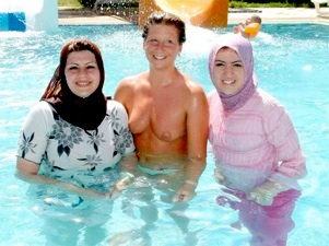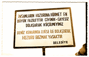 Der Berg ist voller Wasserquellen, aus denen man klares kaltes Wasser trinken kann. Viele Bäche suchen sich ihren Weg nach unten, entweder in die Ägäis oder ins Marmara Meer. Der Weg nach zum Meer führt über viele Wasserfälle, an denen heute leider auch viele Picknickplätze entstanden sind. Wenn Paris morgen als Hirte durch die Gegend ziehen würde, würde er nicht mehr aus nur drei Schönheiten eine wählen müssen. Ob sich die Aphrodite alias Venus mit den heutigen Schönheiten messen könnte, ist aber nicht immer sicher. Auf jeden Fall wird Paris keine einfache Entscheidung fällen können, weil er bei einem Teil der Damen nicht mehr viel sehen wird, während andere recht freizügig herumlaufen. Bei meiner ersten Reise galt noch das bekleidete Herumlaufen am Strand als Ruhestörung (das Foto ist authentisch), während heute nur noch Fremde oder befremdlich aussehende Figuren dort in Badehosen herumlaufen. Wenn ich mir die heutigen Sitten angucke und diese mit den Stories aus der Mythologie vergleiche, z.B. wie Zeus Europa über den Hellespont jagt oder Schwan bei Leda spielt, oder wie Aphrodite den armen Anchises verführt, muss ich zugeben, dass der Weg zurück zum Mittelalter ziemlich weit gediehen ist. Frauen mit Chador sind zwar noch selten, aber Schwimmen mit Klamotten nicht. Dummerweise haben die Mullahs gemerkt, dass Frauen in normaler Kleidung im Wasser noch anziehender aussehen als ohne (wet t-shirt contest). Deswegen ziehen sich die Damen richtig warm an, wenn sie ins Wasser gehen.