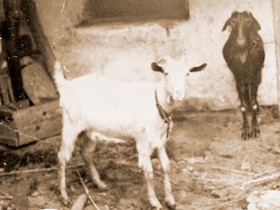 Eines Nachmittags grinste unser Wirt noch breiter als sonst, sodass man nicht nur seine goldenen Zähne sehen konnte, sondern auch die Backenzähne. Er fragte uns, ob uns auf seinem Hof etwas gefallen hätte. Wir guckten uns herum und sagten: „Die Ziegen. Die sehen sehr hübsch aus.“ Sie sahen wirklich hübsch aus, auch wenn das Foto sie mittlerweile nicht mehr schön abbildet, weil es Patina angesetzt hat. Er ging und kam eine halbe Stunde später in unser Kabuff. Er sagte: „In Ordnung, die Mädchen packen ihre Sachen, ihr könnt heute Abend wegfahren.“ Hä! Welche Mädchen? Da guckte unser Wirt ratlos im Zimmer herum und sagte, die Ziegen von vorhin, was denn sonst?