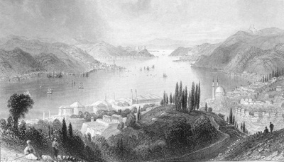 Da wo etwa das Kreuz von Konstantin gestanden haben mag, kann man heute einen weißen Kiosk bewundern. Stil nicht ganz türkisch, auch nicht osmanisch. Vielleicht spät-osmanisch? Eher Rokoko. Übrigens, das Wort Kiosk stammt aus dem Türkischen und wird für etwas prunkvolle Gebäude weit unterhalb von „Palast“ benutzt. Dieses Gebäude hier sieht gegenüber dem Palast zwar mickerig aus, stellt aber für sich gesehen ein Kunstwerk dar. Für manchen allerdings dürfte es das letzte schöne Ding gewesen sein, das er gesehen hat. Wer etwa in der Kameraposition schwamm, war nicht selten Todeskandidat, hier gibt es bis vier Knoten Strom. Und den überleben nur gute Schwimmer, indem sie hier gar nicht schwimmen. Die anderen finden sich im Nu einige Meilen südwärts. Und die antiken Kolonisten konnten ins Schwarze Meer nur dann gelangen, wenn sie diese Stelle Richtung Norden passiert hatten.