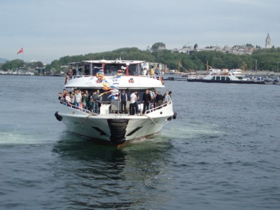 Auch die, die mit allen sonstigen Vehikeln nach Istanbul gespült werden, können eine Personenfähre nehmen, die sie unbürokratisch in Beylerbeyi absetzt. Während die alten Bosporusfähren fast 100 Jahre lang mühsame Anlegemanöver absolviert haben, um ihre Fahrgäste loszuwerden, machen es die jetzigen brutal einfach. Die Fähre verlässt sich auf ihr Reifenpolster am Bug und stößt geradeaus auf die (ehemalige) Anlegestelle zu. Der Käpt´n lässt beide Maschinen vorwärts laufen, bis die Fahrgäste ein- bzw. ausgestiegen sind. Dann rummmss, voll rückwärts und die nächste Haltestelle. Kein Wunder, die Kisten sind direkte Nachfahren der Schnellboote, die die Amis den Russen im Krieg geliehen hatten. Als der große Krieg, und dann die Freundschaft, zu Ende war, mussten die Beschenkten das Geschenk loswerden. Da es nicht mehr der Rede Wert war, blieben die Boote in Istanbul. Die Kisten nach Newport oder gar San Diego zu fahren, hätte auch zu Zeiten des billigen Diesels ein Vermögen gekostet. Sie sehen nicht mehr so militärisch-bedrohlich aus und bieten viele nette Sachen wie den schnellen Tee über den Bosporus. Ein Boot ist mir im Gedächtnis geblieben, weil dessen Kapitän das für mich originellste Rauchverbot erlassen hat. Auf einer Tafel stand geschrieben: „Hier darf geraucht werden. An jedem zweiten Tag. Heute ist der Tag, an dem nicht geraucht werden darf.“ Na ja, das klingt nach Catch 22.