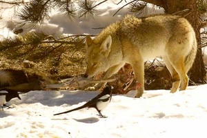 Die Landschaft war indes zu schön, um seine Zeit mit solchen Überlegungen zu vergeuden. Man musste einerseits die Augen offen halten, um nicht in die Nähe eines Bären zu kommen. Andererseits bot allein die prächtige Vogelwelt derart schöne Ansichten, dass ich die nicht allzu ergiebigen Charakterstudien zurück stellte. Die Wahrheit habe ich ohnehin einige Abende später erfahren, von den Kojoten. Sie standen mit den Hunden auf Du! Die Jagdszenen waren allesamt gestellt. Verwandt sind sie ja ohnehin, canis und canis latrans.
