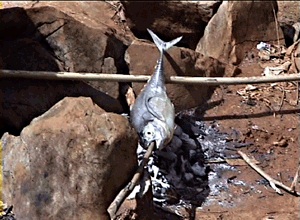 Wer einen gegrillten Fisch hier Essen will, muss einen selbst mitbringen, d.h. mitbringen lassen. Die Jungs lassen einen ungern arbeiten. Sie haben am nächsten Abend auf einer einsamen Sandbank ein Riesenfeuer veranstaltet und uns Fische gegrillt. Danach durfte ich für eine Nacht Inselbesitzer werden.