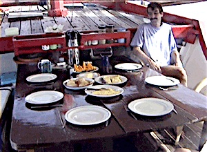 Wenn man auf so ein Schiff geht, darf man keinen Luxus erwarten, außer dass es Luxus genug ist, mit maximal sechs Leuten eine Woche tauchen zu können.