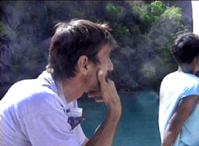 Eine besondere Art des Tauchens kann einem wärmstens empfohlen werden, wobei wärmstens wörtlich gemeint ist. Barracuda Lake ist Bergseetauchen und Kneipp Kur in einem. Die Wassertemperaturen steigen von 29°C an der Oberfläche auf 40°C in etwa 25 Meter Tiefe. Im Mittelmeer ist es anders, da fängt man mit 26º C oben an und friert sich in 40 m Tiefe bei 7ºC die wichtigsten Körperteile ab. Dieser See wird wohl von unten durch einen Vulkan geheizt, der damit den untrüglichen Nachweis erbringt, dass unser Energieproblem nicht durch Verspargelung der Natur mit Windmühlen und auch nicht durch Pflastern von schönen Landschaften mit Sonnenkollektoren zu lösen ist. Wir sitzen auf einem Feuerball mit 12.000 km Durchmesser, der nur notdürftig an den ersten 100 erkaltet ist!
