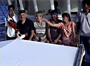 Es gab öfter Landausflüge, manchmal in die Disco, manchmal auf einen Sandstreifen zum Grillen. Bei solchen Gelegenheiten habe ich mich unter die Sterne gelegt und erst am nächsten Tag abholen lassen. Man sagte mir zwar, manchmal würden die Gäste eher von den Piraten geholt, solche Geschichten glaube ich aus reinem Optimismus nicht. Manchmal sind sie aber wahr. Alle Schiffe, die hier oder in Indonesien die Inselwelt bereisen. müssen sich darauf gefasst machen, von Piraten überfallen zu werden. Auf die schießt man aber nicht, sie werden heute mit Wasserkanonen weggespritzt.