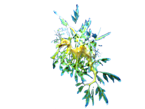 Die Fetzenfische sind nicht nur fetzig anzusehen. Ihre Bewegungen zu beobachten ist ein Erlebnis für sich. So friedlich sie auch aussehen und wirken, für kleine Krebschen, die sie gerne knacken, stellen sie Seemonster dar, daher ist der englische Name Leafy Seadragon gar nicht so falsch. Fetzenfische sind entfernte Verwandte des Stichlings und gehören zur Ordnung Gasterosteiformes, Unterordnung Seenadelartige. Die hier abgebildete Art lebt wohl nur in australischen Gewässern und im Seegras, wie alle Seenadeln es gerne tun. Sie gilt als gefährdete Art, weil vermutlich nur etwa 700.000 Exemplare existieren. Und das obwohl der Papa die Eier nicht nur ausbrütet, sondern die Kleinen sorgsam aufzieht.