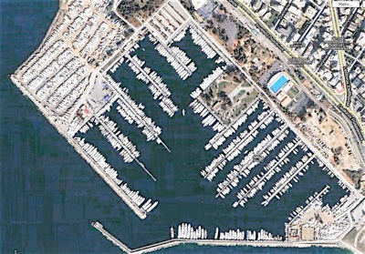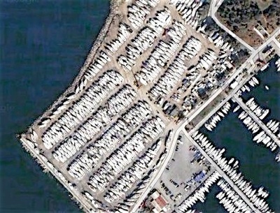 Kalamaki sieht etwa so aus, wenn Winter ist. Voller Yachten, aber noch nicht voll. Einige Plätze sind noch frei. Voll wird der Hafen, wenn die kleinen weißen Striche (oben links im Bild, unteres Bild) ins Wasser kommen. Das sind ineinander geschachtelte Yachten. Ja, die waren gerade alle im Wasser, weil die Segler noch in Wintersachen zu Hause dösten. Lavrio ist hingegen an der Ägäis und hat noch Platz. Man muss leider etwa 2 Stunden mit dem Bus dorthin fahren.