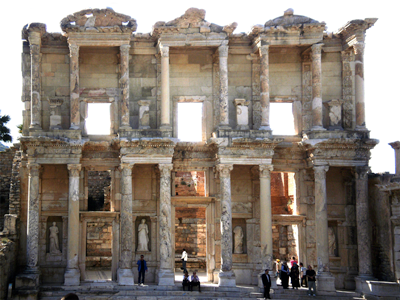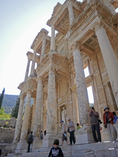Unser Punkt der Verabredung zum Crewwechsel war exakt in der Mitte dieses Gebäudes, das einst als Bibliothek erbaut wurde. Es wurde zwischen 114 und 125 n. Chr. von Tiberius Iulius Aquila Polemaeanus zu Ehren seines Vaters Tiberius Iulius Celsus Polemaeanus errichtet. Vater und Sohn gehörten zur römischen Oberschicht, dem Senatorenstand, und hatten das Amt des Konsuls bekleidet. Im Unterbau der Bibliothek befand sich die Grabkammer des Celsus, wo dieser in einem Marmorsarkophag bestattet war.