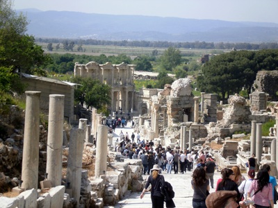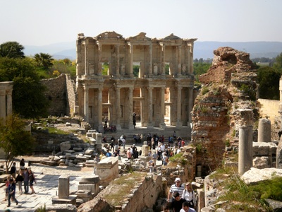Dieser Ort, Ephesus, hat von den heidnischen Göttern der Zeit vor den Griechen bis zu dem Gott der Muslime mehrere Generationen hoher Herrschaften im Himmel gesehen. Die lustigsten davon waren die griechischen Götter, deren Wohnsitz, Olymp, die Vorlage für manche Orgie geliefert hat. Die römischen, die übrigens jeweils ein Doppelgänger von den griechischen waren, haben zwar reichlich hedonistischer gelebt, aber - wer will denn Kopien glauben, wenn die Originale auch noch lustiger waren?