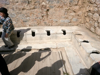 Nachdem mein Vater dieses Foto geschossen hatte, hatte er gesagt „Guckt mal, ob die dahinten eine vergessen haben…“ woraufhin meine Mutter ihn fürchterlich angegangen war. Und heute? Dort steht eine Erklärung, dass diese Stelle früher fälschlicherweise als … bezeichnet wurde. Ach, nee! Man soll nur bei Hermann Mostar lesen, wie die Sitten damals waren. Seine Version ist angesichts der hier rechts abgebildeten Räumlichkeit plausibler. In Ephesus war man auf Geselligkeit aus - und das in allen Lebenslagen!