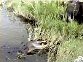Chief Billie lässt seine swamp buggies eben durch diese, die Sümpfe, fahren. Man bleibt trocken, sofern das Wasser nicht von oben kommt. Ansonsten bleibt das Ding mitten in einer Krokodil- oder Alligatormeute stehen und man sieht die Echsen um die Pellets kämpfen. Sie haben nämlich gelernt, dass die lauten Monster ihnen die lästige Jagd nach Groß- und Kleinvieh ersparen.