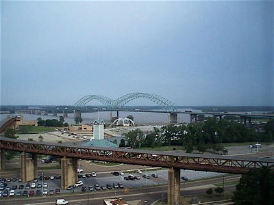 Wenn man in Memphis ankommt, wird man ungeachtet aller Vorsätze von einem der größten Flüsse der Erde vereinnahmt, dem Mississippi. Zu meiner Kindheit sollte dieser der längste Fluss der Erde sein, später erkannte man aber, dies sei geschummelt, weil der Missouri doch nicht zum Mississippi gehört. Wie dem auch sei, der Nil ist der längste Fluss der Erde, dieser hier der zweitlängste. Immerhin! Den Fluss habe ich allerdings mal als den breitesten aller Verwandten gesehen, selbst im Vergleich zum Amazonas, aber glücklicherweise vom Flugzeug aus. Wer wissen möchte, was das bedeutet, möge sich dorthin begeben und, angefangen in New Orleans, nach Norden paddeln. Die hübscheste Story über das Verhalten des Flusses kann man in Lucky Luke lesen. Der - zugegeben übertreibende - Kapitän Ned erzählt dort, dass der Fluss so schnell steigt und fällt, dass die Catfish, also die Welse, in Atemnot gerieten, weil zu lange an der frischen Luft geblieben. Was die Krokodile dazu sagen, hat Ned nicht erzählt. Denen ist die Sache egal, und in Memphis gibt es keine mehr, weil die warmen Sand zum Brüten benötigen. Und den Mississipi Dampfern haben die Bahnbrücken die Herrschaft beendet.