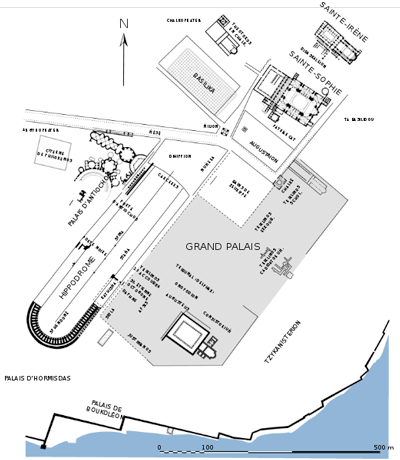 Die Pracht der Zeit vor 1204, als die Lateiner unter dem Mantel eines Kreuzzuges die ganze Stadt geplündert haben, kann man naturgemäß nicht restaurieren. Auch die Quadriga, das Vorbild der Berliner Quadriga, wird nicht mehr an ihren Platz zurückkehren. Sie stand bis 1204 beim Hippodrom vor der Tribüne des Kaisers, seit dem Klau in Venedig auf dem San Marco Platz. Den Zusammenhang der Gebäude kann man gut aus der Skizze der Wikipedia erkennen.