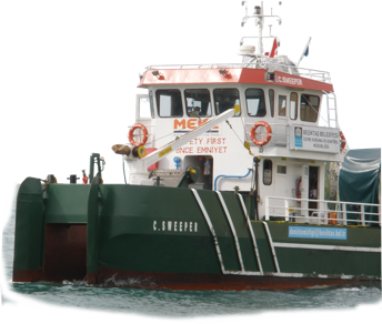 Das sichtbarste Zeugnis des neuen Reichtums liefern kleine Schiffe mit einem seltsamen Bug. Der steht offen und sammelt den ganzen Dreck ein, den die Strömung an bestimmten Stellen zusammen wirbelt. Damit auch die Ausländer verstehen, worum es sich hierbei handelt, tragen die Schiffe englische Namen. Sweeper!
