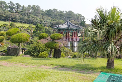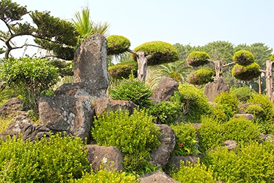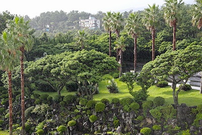 Daneben steht ein großes Gewächshaus, das mit manchen Häusern in botanischen Gärten aufnehmen kann. Dort stehen allerlei tropische Pflanzen und Bäume - es ist ja nur subtropisch auf Jeju!
