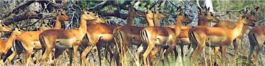 Impalas sehen schon im unbewegten Zustand toll aus, und dieser Eindruck wird durch die Grazie ihrer Sprünge weit getoppt. Eigentlich gehören sie in die weitere Verwandtschaft von Ziegen, können aber, anders als die Verwandten, Sprünge bis zu neun Metern absolvieren - und mehrere davon hintereinander. Leider finden sich die schönsten von ihnen, die Herren Impala, nicht in den Herden. Sie leben als Einzelgänger in ihrem Revier und machen jede Impalabraut an, die ihr Revier betritt. Nicht auszumalen, wenn dies unter Menschen Schule machen würde …