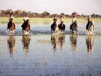 Überhaupt hat mich die Reiterei an die Halle erinnert. Zum einen, weil die Pferde gerne Abteilung bilden, zum anderen, weil ich in fast zwei Wochen in der Wildnis weniger Probleme mit meinen Pferden hatte als in einer Stunde in der Halle. Die Tiere scheuten nicht einmal beim Wittern von Löwen in der Ferne so stark wie unsere City-Gäule beim Anblick eines Radlers in Berlin Grunewald. Im Reitstall bin ich einige Male außerplanmäßig abgestiegen (worden), wobei mich einmal das Pferd anschließend sogar angreifen wollte. Als ich mich mit einem Hüpfer hinter die Tribüne gerettet hatte, hat die Dame, es war eine Stute, sogar andere Reiter angegriffen. Diese mussten sich fast 40 Minuten ihren Angriffen aussetzen und waren am Ende klatsch nass. Das Irre an diesem Ereignis war, dass die Stute ein Liebling der Kinder war und in der Regel auch bei Erwachsenen lammfromm. Da ich die wundersame Verwandlung auf die Haltung in Ställen zurück führe, bin ich seit Okavango nie mehr in der Halle geritten.