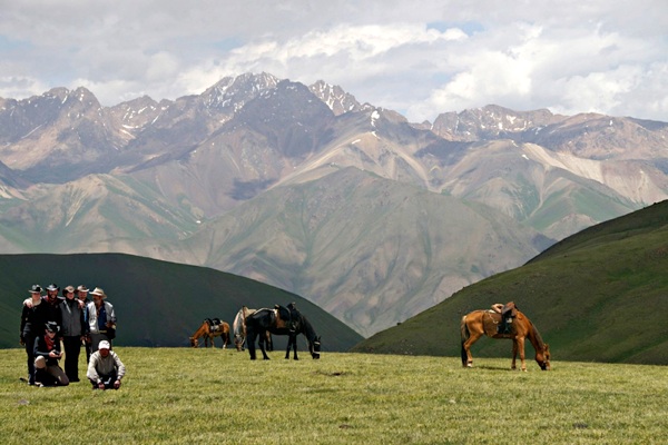 Die Kirgizen sind unwahrscheinlich gastfreundlich. Dennoch muss man als ungebetener Besucher sein Pferd mit kurzer Leine anbinden, auch wenn man zum Essen eingeladen wird. Erst wenn die Pferde mit eingeladen sind, darf die Leine verlängert werden. Hier ist kein wildes Land, sondern Almwirtschaft, freilich weit oberhalb der Baumgrenze.