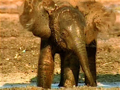 Auf der anderen Seite des Flusses ging es im Galopp weiter, damit wir das Wasser abschütteln konnten. Meine Lage war besonders prekär, weil ich weder andere Schuhe noch Anziehsachen im Camp hatte. Dank Lufthansa. Ich schließe die Firma seitdem in mein täglich Gebet ein. Besonders tief hing mir das Herz, als wir nach einer halben Stunde neben einem prächtigen Elefantenbullen trabten. Meine nassen Turnschuhe kamen mir verdächtig rutschig vor.