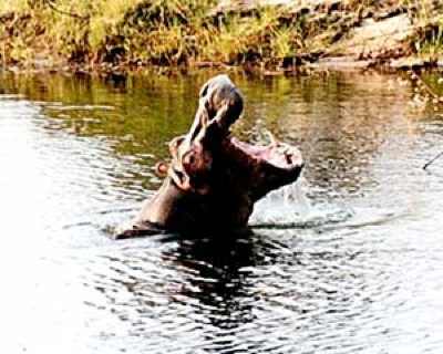 Vom Ufer aus rief P.J. etwas zu mir herüber und die anderen sprangen auf, um in meine Richtung zu sehen. Was soll´s! Haben die keinen Touri gesehen, der ein Mokoro fährt? Nach etwa hundert Metern wusste ich, was die Stunde geschlagen hatte, als ich ein lautes Schnauben wahrnahm. Die Rinne im Wasser war der Trampelpfad eines Hippos! Dies sind ziemlich humorlose Gesellen …