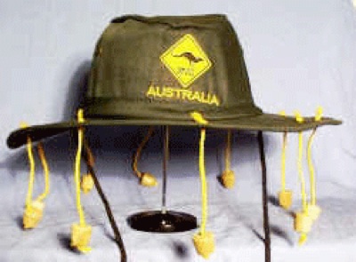 Die unbotmäßigen Fliegen laben sich im fremden Rinderdung und belästigen jeden. Darum laufen die Farmer angeblich in fantasievollen Hüten durch die Gegend, während sich die Touris komplett in Tüll hüllen. Sie tragen Hüte mit einem kompletten Tüllüberwurf, der mit einem Gummiring am Hals endet. Elegant wie die Damenhüte in Ascot sehen sie aber erst dann aus, wenn sich mehrere Fliegen darauf gesetzt haben. Australien ist überhaupt reich an Dingen, die keiner gebrauchen kann. Z.B. an Kaninchen, die eine Pest sind. Wegen seiner Ähnlichkeit mit denen bekommt der Osterhase nicht einmal ein Gastarbeitervisum. Oder an Kamelen, die man am Ende des Baus vom Ghan, des legendären Zugs nach Cairns, einfach in die Wüste entlassen hat, als man die Karawanen nicht mehr brauchte.