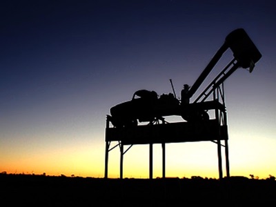 Das Opalgeschäft st typisch für das Unternehmertum des kleinen Mannes. Anders als im Goldgeschäft haben große Firmen beim Opal nichts verloren. Das liegt daran, dass Gold gerne klumpt. Will sagen: hat man irgendwo Gold gefunden, gibt es in der Nähe noch mehr. Ist man auf Opal gestoßen, gibt es in deren Nähe mehr oder gar nichts. Daher wurde die Größe der Claims auf 50 x 50 m begrenzt. In der Mitte bohrt der Möchtegern-Miner langsam ein Loch. Und schüttet den Abraum auf eine langsam wachsende Pyramide. Man kann mit einem Presslufthammer anfangen, oder zu einem härteren Mittel greifen, zu Maschinen, die allesamt hier konstruiert und gebaut werden. Natürlich benutzt man den Peacemaker von Alfred Nobel. Peng!