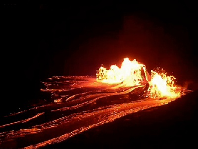 Ganz anders unser Ziel: Kilauea! Er ist nicht sehr groß, so dass man ihn für einen Seitenkrater von Mauna Loa halten könnte. Tatsächlich kocht hier die gleiche Lava aus der gleichen Quelle empor. Trotzdem stellt Kilauea eine Besonderheit der Extraklasse dar: Er ist Heimat von Pele, der Göttin der Vulkane, und stellt dieser den täglichen Kochherd zur Verfügung. Kilauea ist seit 1952 34 mal explodiert! Das aber fällt bei weitem nicht so imposant aus als die Zahlen über ihre letzte Eruption: Kilauea kocht seit Januar 1983 vor sich hin und lässt ständig massenhaft Lava ins Meer fließen. Es gibt Filme, die zeigen, wie tropische Fische zwischen explodierenden Lavaklumpen rumschwimmen. Die Lava fließt unter Entwicklung mächtiger Dampfwolken ins Meer, nachdem sie etwa 15 km durch Tunnel zurück gelegt hat. Dort explodiert sie ständig kleiner werdend. Am Ende bleibt grün schimmernder schwarzer Sand - frisch aus der Hölle.