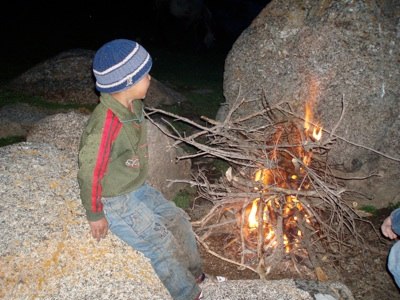 Als das Nachtlager aufgeschlagen wurde, befanden wir uns kurz unter der Baumgrenze. So wurde das erste und letzte Lagerfeuer angezündet, ohne dass der Zündfunke zu uns rüber gesprungen wäre - es regnete heftig. Ab in die Zelte! Leider, leider waren diese Dinger nicht ganz dicht. Manchen tropfte es leise rieselnd auf den Schlafsack.
