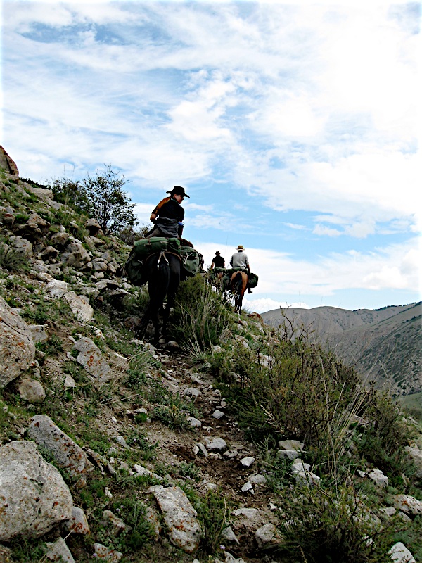 Himmelwärts mit vollem Gepäck. Auch wenn dieser Pfad spektakulär aussieht, sind die wahrlich spektakulären Strecken nicht im Bild festgehalten. Wir hatten besseres zu tun. An manchen Stellen waren die Bäume und die Felsen so eng, dass wir froh waren, dass die Satteltaschen nicht leer waren.