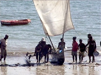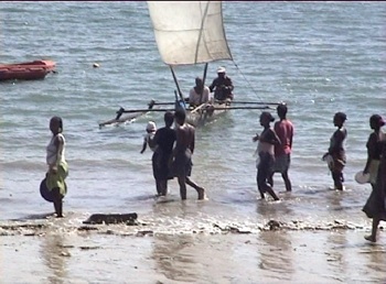Abends saß ich vor meinem Fenster und blickte in die Dunkelheit - bis auf zwei Nächte hatte der Ort keinen Strom. Tagsüber war mehr zu sehen, z.B. die Piroggen, die morgens mit Ostwind aufs Meer segelten und nachmittags bis abends voll mit Fisch zurück kamen, mit Westwind. Dann warteten viele Frauen und ein paar Männer auf die Ankunft. Man half den Fischern, das Boot hoch zu schleppen. Dann fing das Feilschen an.