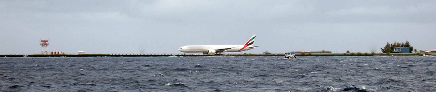 Da die Hauptstadt der Malediven aus den Nähten platzt, hat man sich bereits seit langem überlegt, wie man das knappe Land vergrößern könnte. Seit meinem letzten Besuch hat sich wohl viel getan. Man hat sich zum einen überlegt, Land zu kaufen und hat Anfragen an Indien oder Sri Lanka gestellt. Zum anderen hat man den Holländer gegeben und einfach neues Land aufgeschüttet. So wohnten wir die erste Nacht nicht auf der Aisha, sondern auf einem Land, das sich bei meinem letzten Besuch noch teilweise unter Wasser befunden hatte (Sand, eigentlich Korallenschutt) und teilweise auf Sri Lanka (Baumaterial, Steine). Jetzt bilden sie vereint eine Erweiterung der Insel Hulhule, die in ihrer ganzen Länge als Landepiste dient. Die neue Stadt heißt Hulhulemale und wächst wohl ständig in neue Dimensionen. Ende November 2011 wurde noch Sand aufgeschüttet.