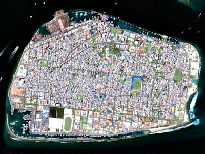 Hulhulemale ist mit einer Buslinie mit dem Flughafen verbunden, und mit Fähren mit Male, der echten Hauptstadt. Wie man sieht, ist die bis zur Kante bebaut. Was uns beim Spaziergang in Hulhulemale und in Male überrascht hat, war das nebeneinander von Glanz (z.B. neue Prachtgebäude, teure Läden, neue Wohnhäuser) und Müll. Die Malediver scheinen jede verfügbare Ecke mit Müll vollzustopfen. Für mich wirkte die Sache verheerend, weil ich nur wenige Wochen davor in Monument Valley in Arizona gewesen war, wo die Amis einem nicht einmal erlauben, in die Landschaft zu p… Und nun das! Ich hatte zwar schon mal erlebt, dass man die Kloake in die Lagune leerte. Aber so?