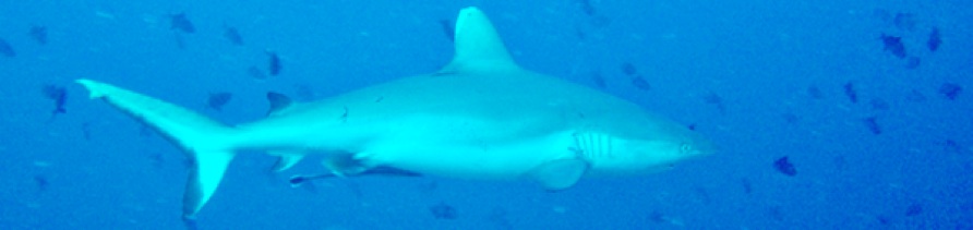 Einer meiner Anfänger, der vorher nicht so gern gehört hatte, dass da unten irgendwo Haie lauern, lag in Greifweite zum bzw. Schnappweite vom Hai. Dieser hatte aber weder Lust noch Laune, seine Jause aus dem Gummi zu pellen.