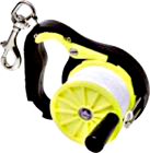 So schön man mit so einer Wurst tauchen kann, so dumm können manche Anbieter von Sicherheitstechnik sein. Mehrere Leute hatten eine etwa 10 m lange Schwimmleine, lose zusammen gelegt bekommen. Man kann sich leicht vorstellen, an wie vielen Stellen einer Taucherausrüstung sich eine Schwimmleine verheddern kann. Gewusel. Nicht so bei richtig ausgerüsteten Tauchern. Sie tragen so´ne Art Winch, mit der man die Wurst meisterhaft fieren kann. Wer etwas respektlos von Wurstwinch redet, verdient alle Verachtung. Kenner sprechen von reel oder spool. Sie tragen auch ein backplate mit stagepack zum Verstauen der Boje bei sich. Der Himmel weiß, wie ich all die Jahre ohne solches Equipment überlebt habe. Übrigens, das blaue Ding zwischen Boje und spool ist eine von den Tieren, die viele hundert „Schnüre“ in einer Länge von vielen Metern hinter sich ziehen können, ohne dass sie sich verheddern. Die Natur ist halt perfekter. Und die Viecher müssen nicht am Ende eines jeden Tauchgangs 5 Minuten Stopp bei 5 m machen. Menschen sind halt lausige Wasserbewohner.