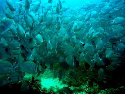 Solche Wasserwanderungen zeigen einem Szenen, wie man sie auch als Taucher selten sieht. Der Taucher hat ja immer eilig, außerdem mindestens noch einen daneben. Beim Wandern ist man allein. Es ist, als würden die Fische das begrüßen und belohnen. Und man ist unendlich langsam. Idealer Zustand, um zu beobachten, ohne zu stören.