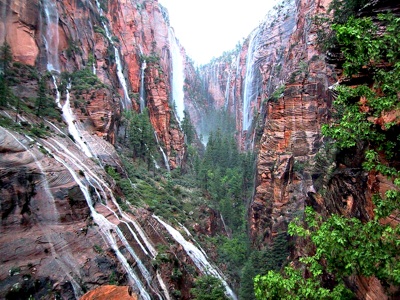 Den Erstbesuchern wird empfohlen, etwa fünf Tage für Zion einzuplanen. Der schnelle Touri fegt in drei Stunden darüber und guckt sich zu Hause ein Video an, das man dort kaufen kann. Was Zion zu bieten hat, kann man hier http://www.travelwest.net/parks/zion/photo_gallery.html und hier http://www.travelwest.net/parks/zion/narrows.html bewundern lernen.