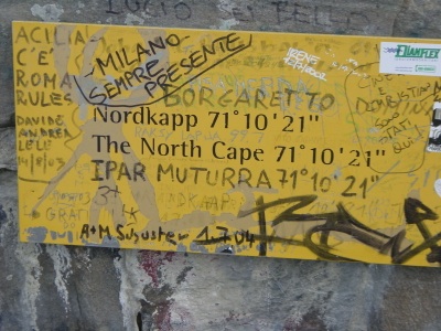 Faule Leute fliegen mit einem Bomber nach Alta, noch faulere nach Lakselv. Von da aus fährt man nur noch ca. 150 km nordwärts - und Nu steht man bzw. frau am Nordkapp. Bis dahin hat man aber je nach Geschicklichkeit der Buchung einen halben Tag unterwegs verbracht. Lakselv heißt Lachsfluss, woran man leicht erkennen kann, warum manche Leute aus Deutschland hierher kommen. Dass sie später sehr viel ärmer nach Hause fahren, steht auf keinem Wegweiser. Die Norweger ziehen dem Angler nämlich die Hosen aus. Etwa 45 Euro für die Angellizenz und nochmal so viel pro Tag, um den Fliegen das Schwimmen beibringen zu dürfen. Wenn man den netten Lachsen gefällt, muss man beim zweiten Fisch sofort aufhören und 24 Stunden aussetzen. Auf der Karte steht zwar einen Tag - zum Glück nimmt das keiner Ernst, weil der Tag im Sommer etwa 2,5 Monate dauert. Vielleicht macht es mehr Sinn, zum Nordkapp zu radeln … Da darf man sich rühmen, an einem einzigen Tag es von Wanne-Eickel zum Nordmeer geschafft zu haben - ungelogen! Ehrlich!