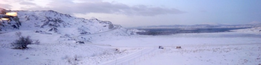 Der Fjord ist voll Eis und Schaum. Wotan lässt seine Wut spüren, wenn man den Mülleimer weg trägt. Ganz weit unten ist er, der Müllcontainer. Der Grill friert zwar nicht, will aber erst in fünf Monaten anständig arbeiten. Der Blick reicht weiter als überall sonst in der Welt, trifft aber keine vertrauten Figuren. Hier kommen einem keine Menschen entgegen, auch keine Trolls. Die sitzen wohl in der Höhle des Mountain King und lassen sich mit der Musik von Edvard Grieg berieseln. Weite, unendliche Weite und unendliche Ruhe. Bei mir zu Hause hörte sich der Lärm der Großstadt danach als Höllenspektakel an - an unserer Musikskala gemessen liegt er eher bei den Geräuschen eines Tonstudios. Wir wohnen am Wald. In Børselv herrscht Ruhe! Echt!