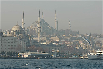 Wer glaubt, dass die Türkei ein moslemisches Land sei, liegt heute nicht falsch. Man muss aber vom Bahnhof in Sirkeci nicht gerade zwei Paar Schuhe ablaufen, um das Kreuz Christi oder Mosaiken mit seinem Konterfei (oder was man dafür hielt) zu sehen. Auch viele Landessitten, die man in Europa gemeinhin für „moslemisch“ hält, sind christlichen oder gar heidnischen Ursprungs. So kann man einen Knochen von Johannes ganze 500 m von Bahnhof im Palast genauso bewundern, wie den Bart des Propheten (echt) und seine Strickjacke. Dabei hatte gerade der befohlen, keine Menschen anzubeten. Das Grab seines Fahnenträgers (nur wenige Kilometer entfernt) ist heute sogar eine Art Wallfahrtsort und trägt dessen Namen. Die christliche Geschichte der Stadt lässt sich bis heute nachverfolgen. Ende des 19. Jahrhunderts herrschte die weltweit größte Ansammlung von Oberhäuptern christlicher Kirchen in Istanbul. Darunter auch der Patriarch der Griechisch-Orthodoxen Kirche, der Armenischen Kirche und der Bulgarisch-Orthodoxen. Während sich die älteren Kirchen ihre Gotteshäuser in Stein und hier haben bauen lassen, so auch die katholische, hat sich die durch ein Ferman des Sultans entstandene Bulgarisch-Orthodoxe Kirche, letztes Schisma, ihr Hauptquartier am Goldenen Horn zusammen geschraubt. Kein Scherz, die Kirche wurde in Wien gegossen und in Istanbul verschraubt, vernietet und zusammen geschweißt. Die einzige Eiserne Kirche der Welt.