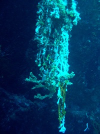 Eine große Besonderheit des Korallenlebens hier ist die Schwarze Koralle. Die ist zwar nicht schwarz, sondern eher braun, dennoch heißt die so. Da hängen richtige Gärten herunter.